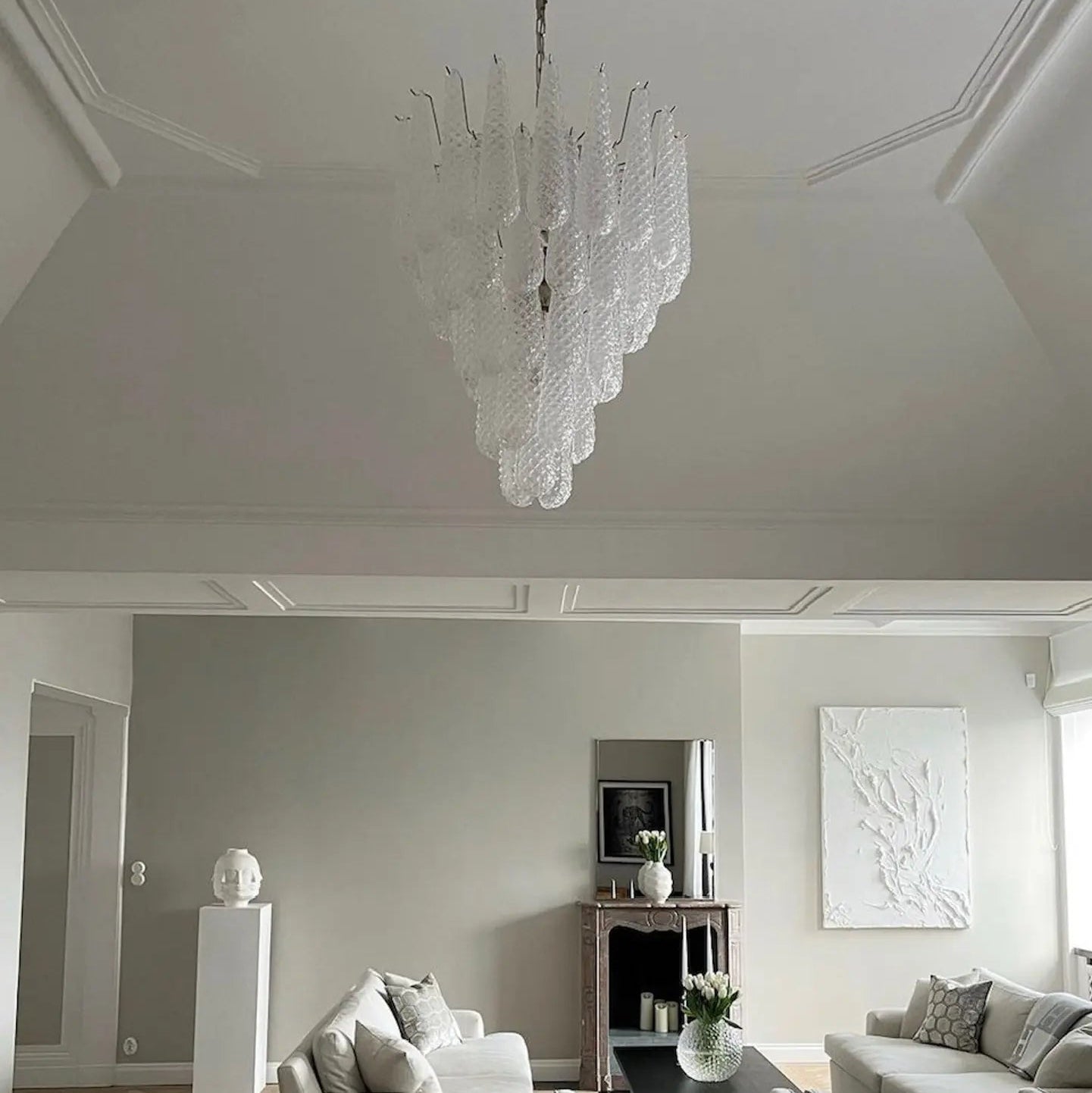 Anthesis Art Glass Chandelier – 26 Petals – White