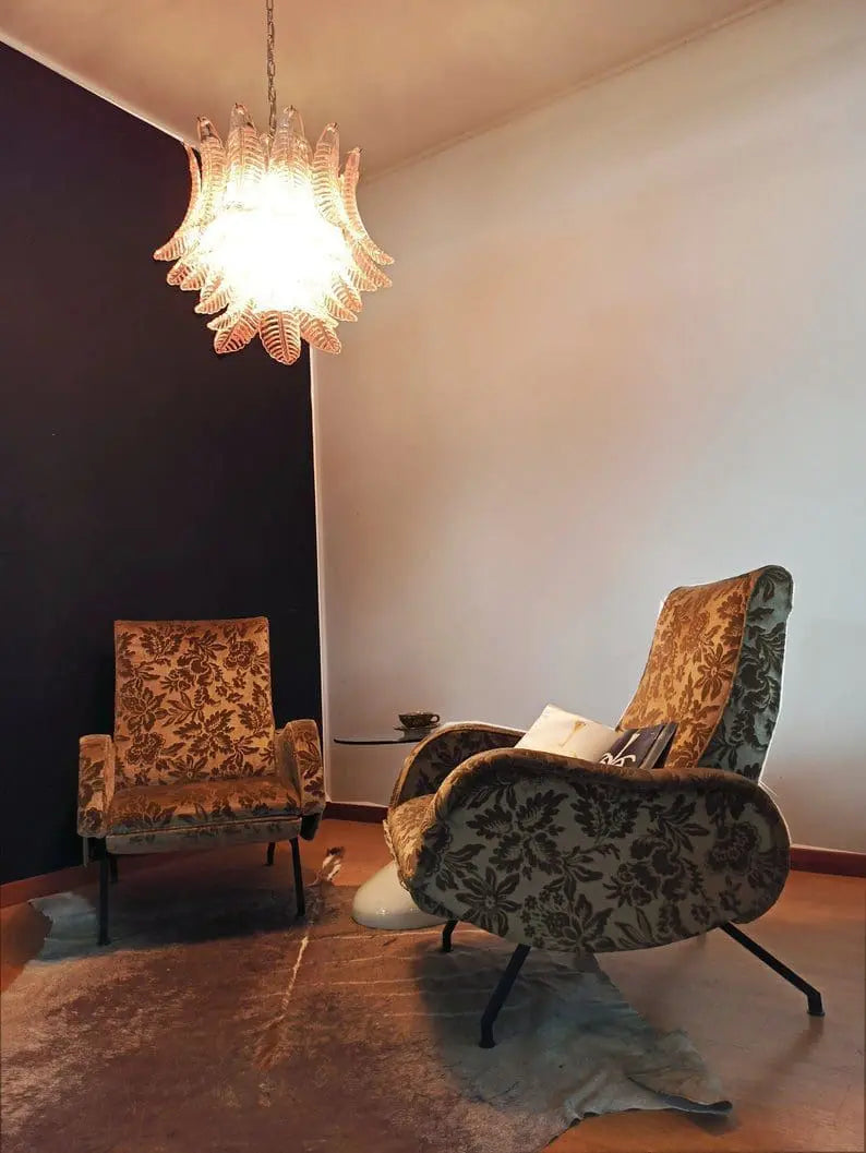 Elevate any room with our Murano Chandelier - featuring 36 hand-crafted glass leaves in a soft, elegant pink hue. Expertly made by skilled artisans, this stunning piece adds a touch of luxury and sophistication to your home. Perfect for creating a glamorous and inviting atmosphere.